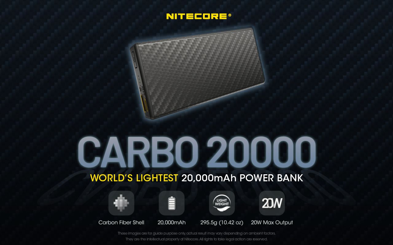 La batterie externe 20000 mAh en fibres de carbone de chez Nitecore.